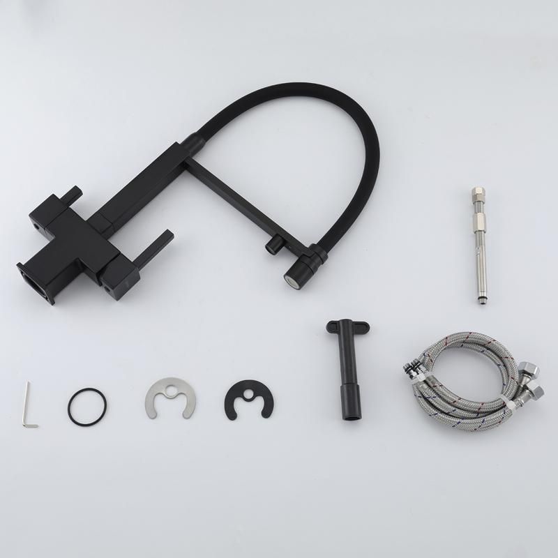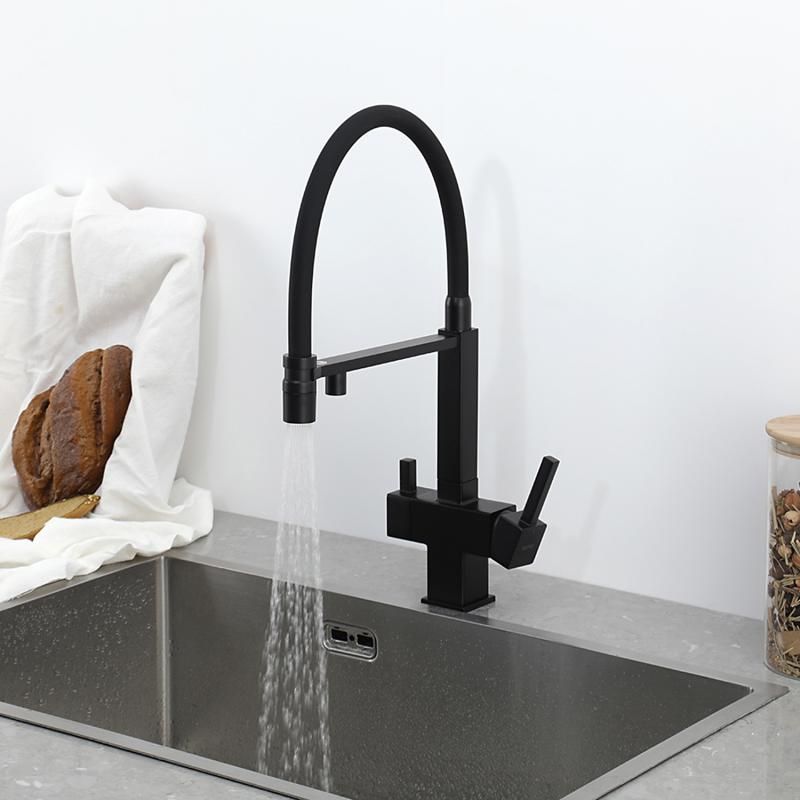 Смеситель для кухни Gappo G4395-56 с подключением фильтра питьевой воды и гибким изливом чёрный