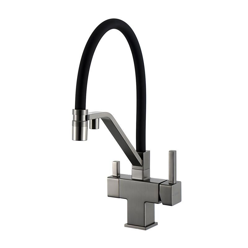 Смеситель для кухни Gappo G4395-69 с подключением фильтра питьевой воды и гибким изливом оружейная сталь/чёрный