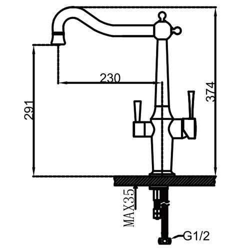 - высота смесителя: 374 мм