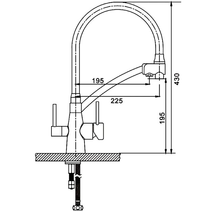 - высота смесителя: 430 мм