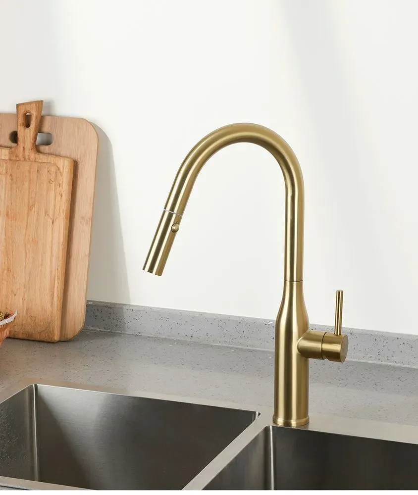 Смеситель для кухни Gappo G4398-43 с выдвижной лейкой оружейная золотой сатин