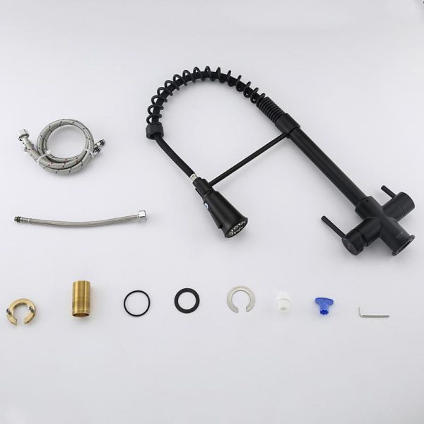Смеситель для кухни 2 в 1 Gappo G4398-66 (черный), с пружиной и подключением к фильтру питьевой воды.