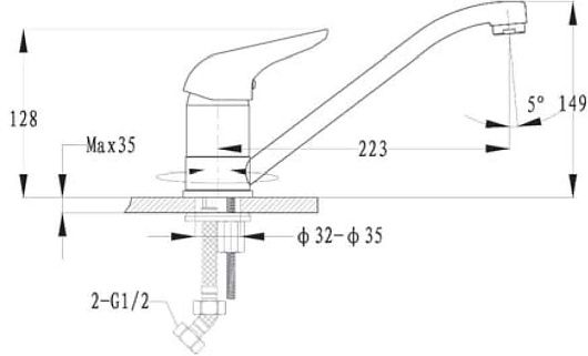 • Высота смесителя: