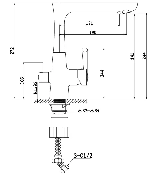 • Высота смесителя:
