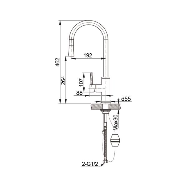 • Высота смесителя: