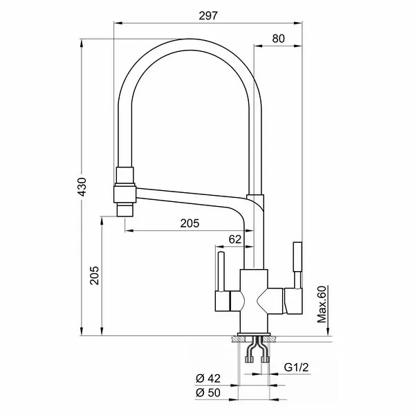 • Гибкий излив:
