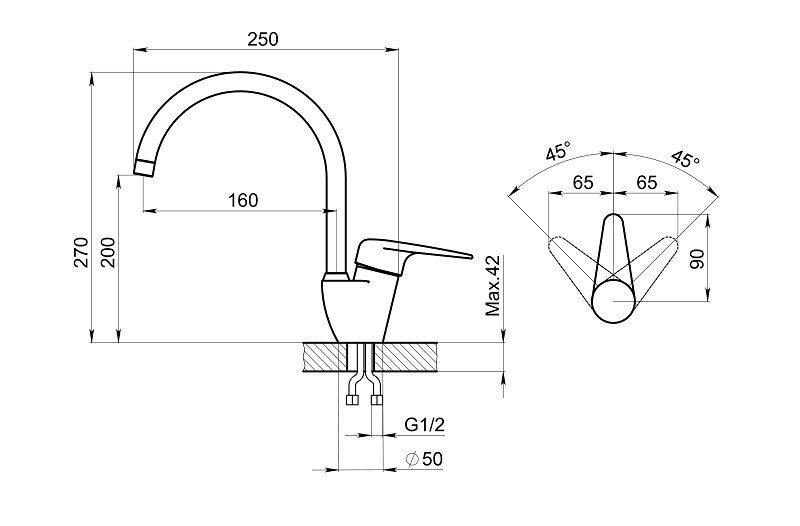 • Высота смесителя:
