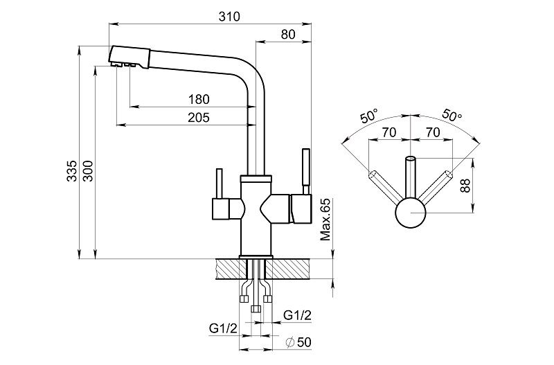 • Высота смесителя: