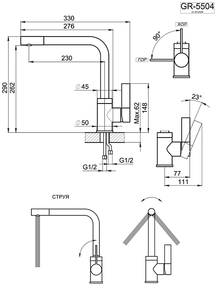 Смеситель для кухни Granula 5504, НЕРЖ нерж