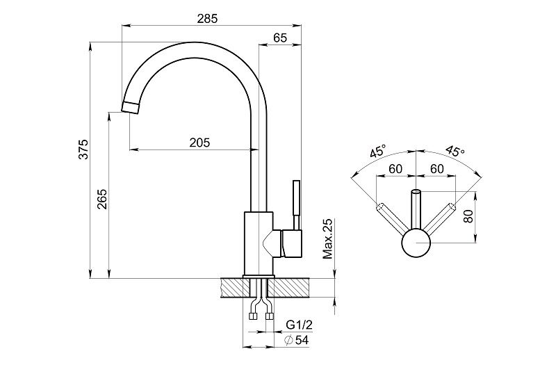 Высота смесителя:37.5