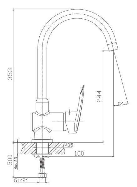 Смеситель для кухни бренда Haiba.Изготовлен из латуни.Картридж 40 мм.Укомплектован аэратором.Гибкая подводка 40 см.С поворотным изливом.