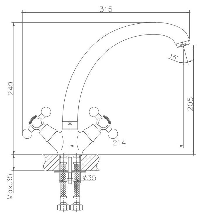 • Высота смесителя: