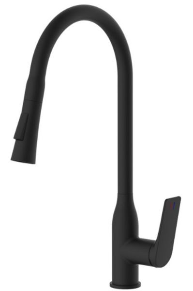 Смеситель для кухни Haiba HB73816-7 с выдвижной лейкой чёрный матовый купить