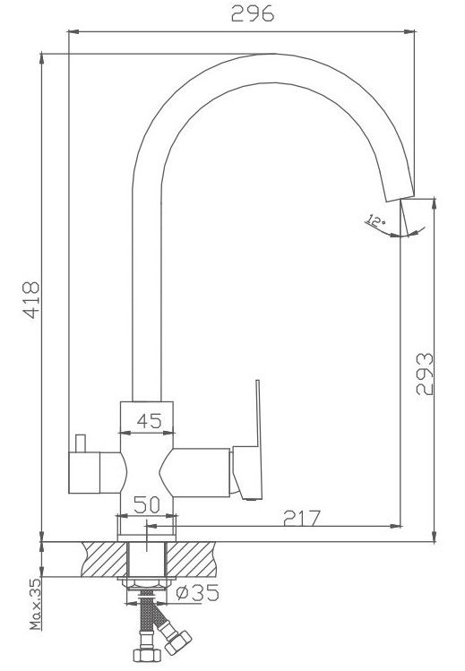 • Высота смесителя: