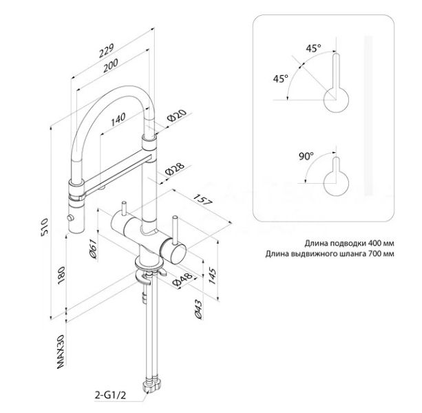 • Выдвижной излив: