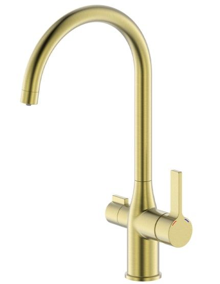 Трендовый золотой матовый смеситель для кухни Pure с J-изливом и отдельным каналом для подачи фильтрованной воды. Минималистичные элегантные формы для классических кухонь и кухонь в стиле прованс. Не требует дополнительного отверстия в мойке под фильтр. Можно подключить фильтр любого производителя и наслаждаться чистой водой прямо из смесителя – она удобно включается отдельной ручкой на корпусе.