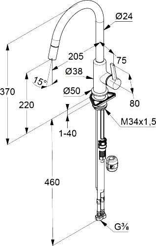 - однорычажный смеситель для кухни DN 15