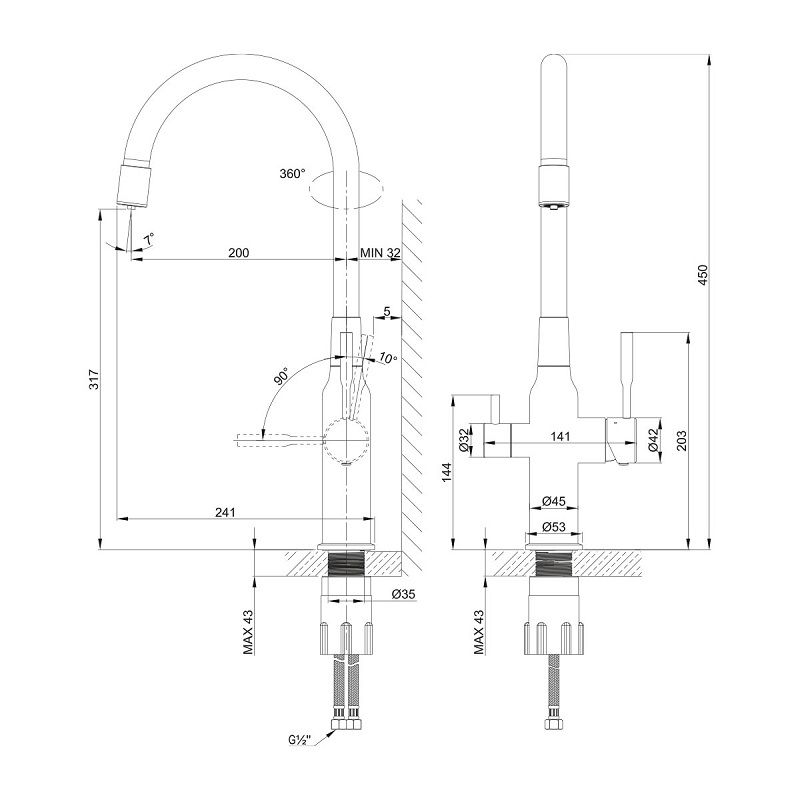 • Выдвижной излив:
