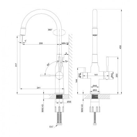 Для крана с питьевой водой: кран-букса с керамическими пластинами (угол поворота – 90 градусов)