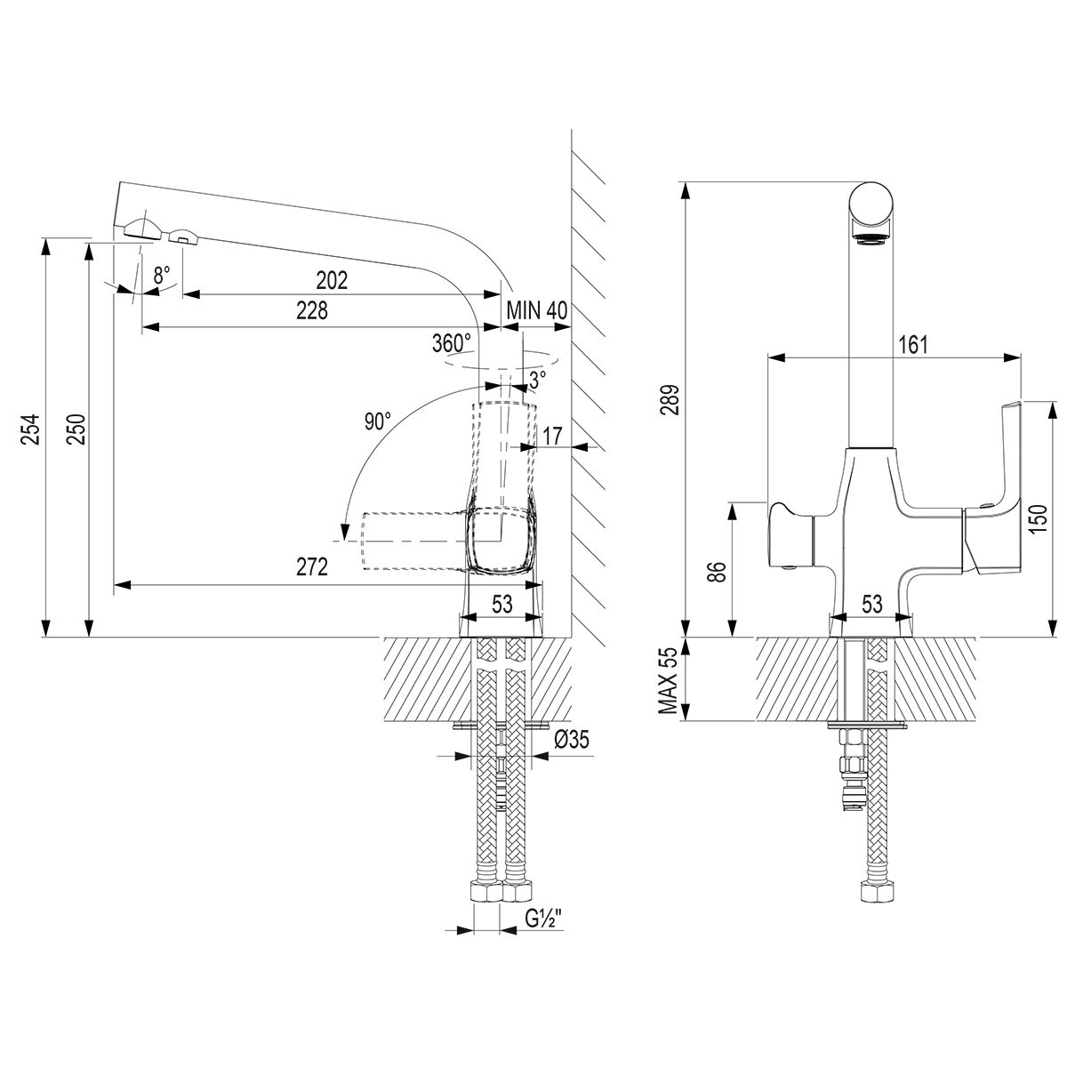• Стандарт подводки: 1/2"