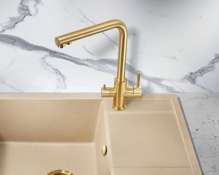 Смеситель для кухни Milacio Ultra MCU.553.GD под фильтр с краном для питьевой воды брашированное золото купить