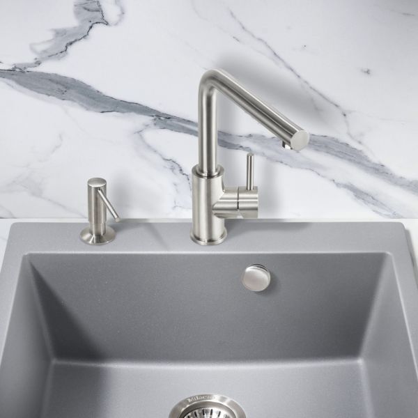 Минималистичный стиль дополняют современные материалы высочайшего качества. Изделие подходит для разных типов раковин и современных интерьеров, полностью удовлетворяя потребности в эстетике и комфорте.