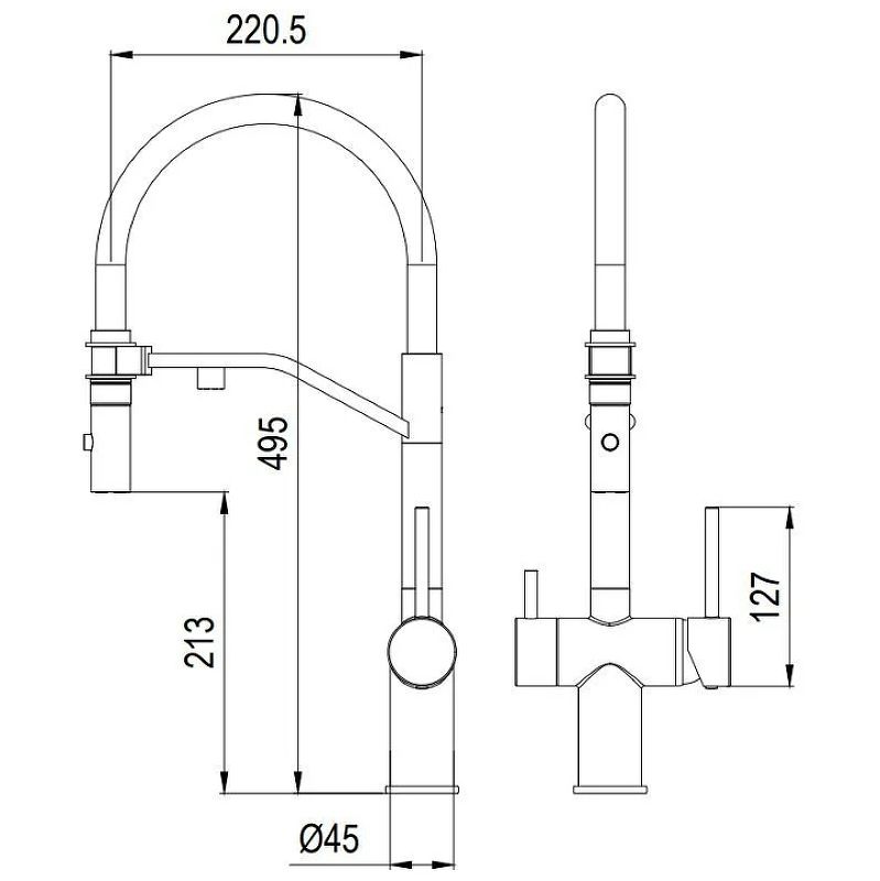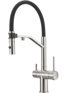 Смеситель для кухни Milacio Ultra MCU.557.SS с подключением к фильтру и гибким изливом нержавеющая сталь купить