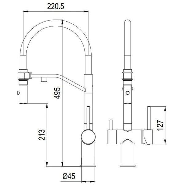 Смеситель для кухни Milacio Ultra MCU.557.TB с подключением к фильтру и гибким изливом Total Black