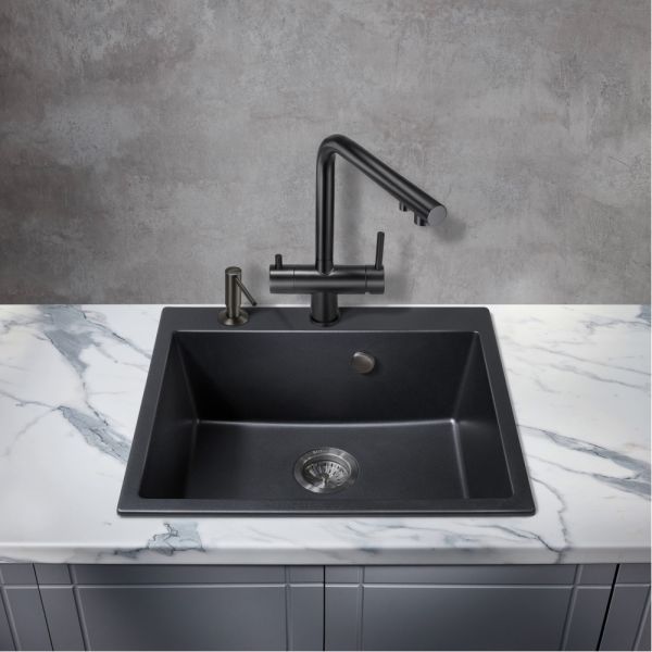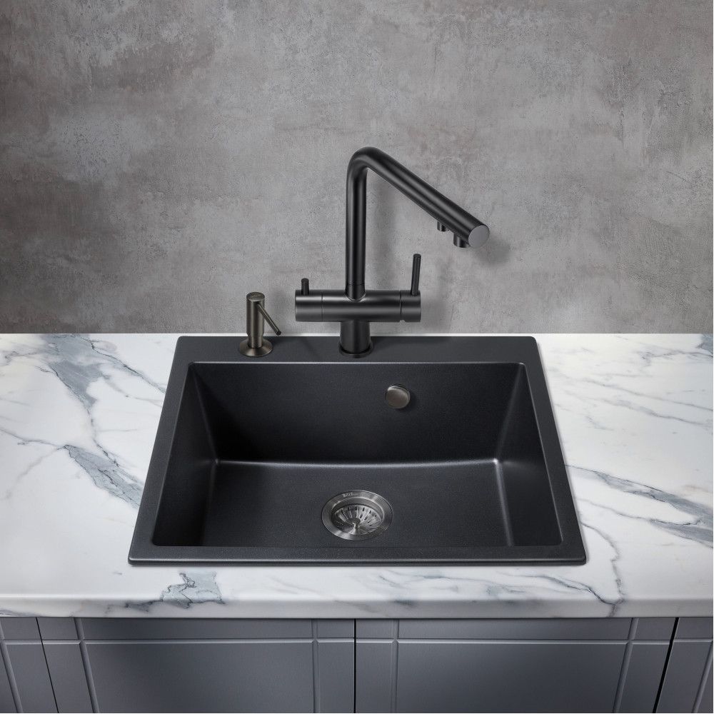 Смеситель для кухни Milacio Ultra MCU.559.TB под фильтр с краном для питьевой воды Total Black
