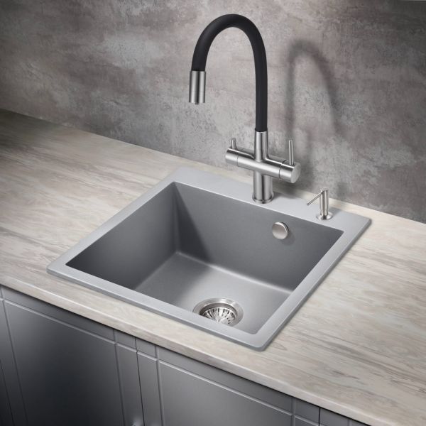 Смеситель для кухни Milacio Ultra MCU.560.SSB под фильтр с краном для питьевой воды и гибким изливом нержавеющая сталь/чёрный купить