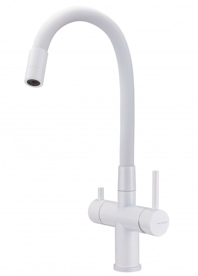Смеситель для кухонной мойки Milacio Ultra (MCU.560.WH) изготовлен из нержавеющей стали, имеет подключение для фильтра, а самое главно имеет гибкий излив белого цвета с возможностью фиксации в любом положении — это стильное и высокофункциональное решение, которое выгодно подчеркнет все достоинства вашей кухни.