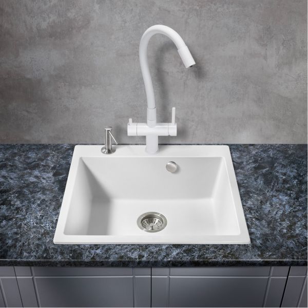 Модель выполнена в белом цвете и имеет изящный излив белого цвета, благодаря чему станет яркой, привлекающей внимание деталью на кухне и никого не оставит равнодушным.