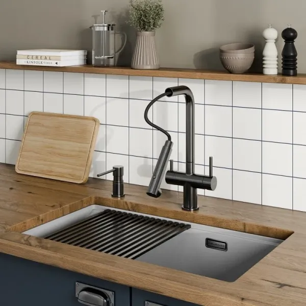 Смеситель Milacio Ultra MCU.561.GM, для кухонной мойки, с вытяжным изливом, вороненая сталь, gun... Подробнее