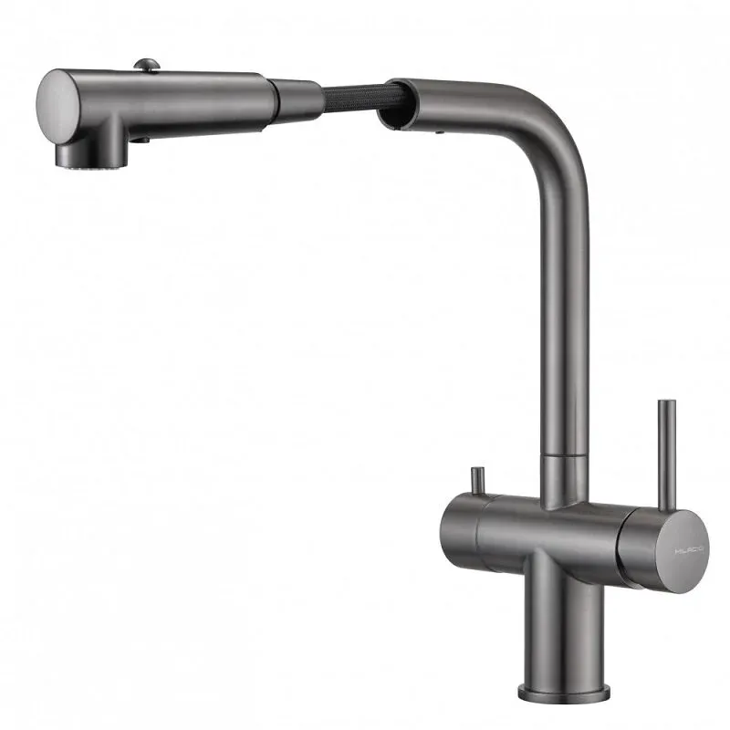 Смеситель для кухни Milacio Ultra MCU.561.GM под фильтр с вытяжной лейкой вороненая сталь