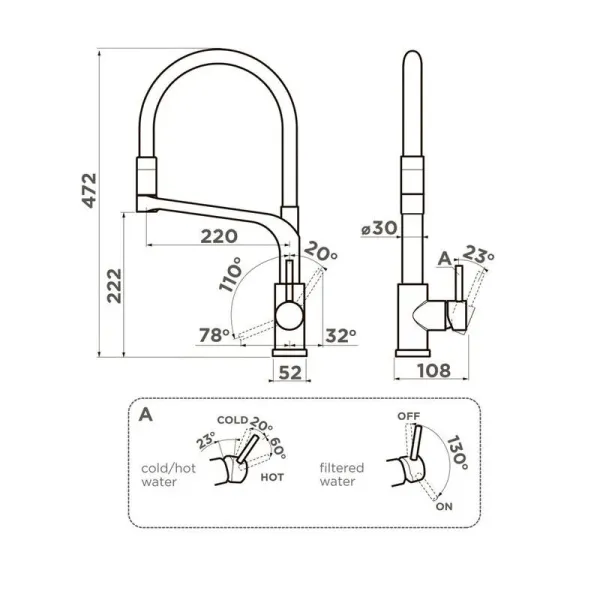 - Высота смесителя: 472 мм