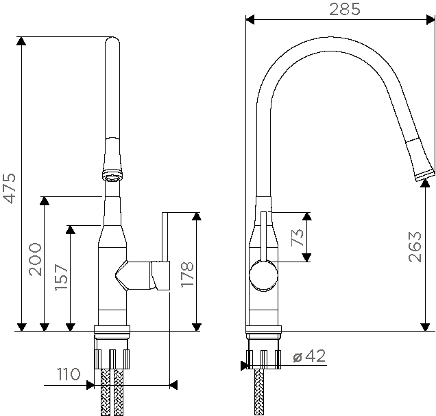 • Выдвижной излив: