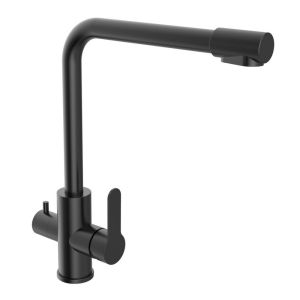 Смеситель для кухни (с керамическим картриджем) с возможностью подключения фильтра для воды – идеальное решение для тех, кто заботится о своем здоровье и здоровье близких. Он изготовлен из латуни с черным матовым покрытием, нанесенным методом порошковой окраски. Два отдельных канала исключают смешивание водопроводной и фильтрованной воды. Высокий поворотный излив с аэратором обеспечивает комфорт при мытье посуды и предотвращает разбрызгивание. Покрытие удобно в уходе – поверхность смесителя достаточно протирать мягкой салфеткой.