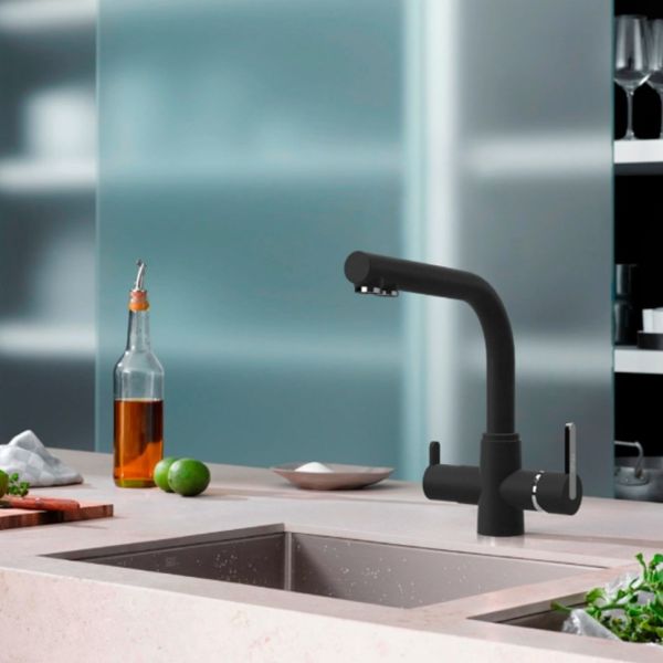 Смеситель для кухни Paini Arena 92446433VE7B90DALMKM с подводом для фильтра чёрный
