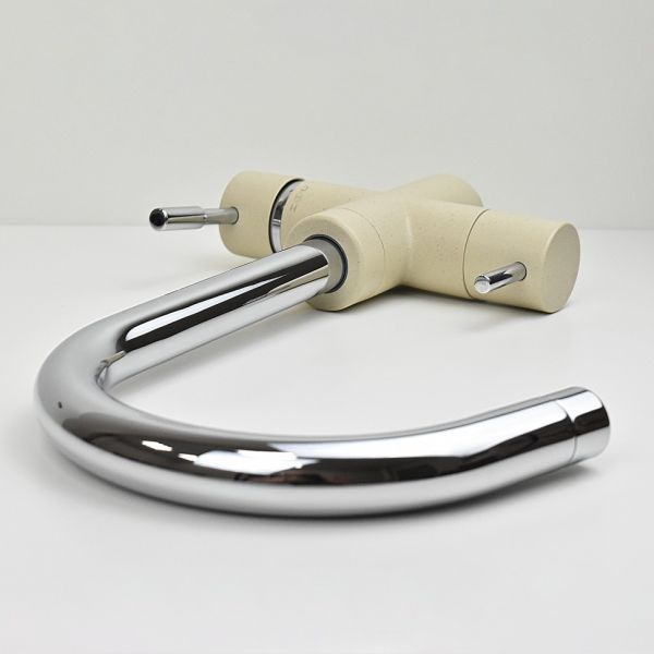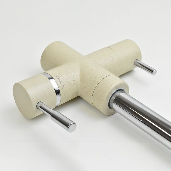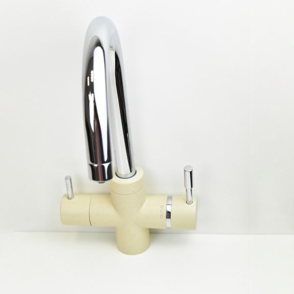 Оптимизируем мокрую зону на кухне со смесителем PAINI COX на 3 воды! Однорычажный смеситель классической формы, но с одной важной деталью: фильтр для воды подключается прямо к смесителю. Легкий монтаж без дополнительных отверстий в столешнице, теперь для доступа к питьевой воде нужно просто повернуть рычаг на корпусе смесителя. Смеситель представлен в необычных цветах, что дает простор творчеству и позволяет сочетать его с мойками и кухонной мебелью разных фактур и материалов.Разнообразие цветаТри варианта бежевого цвета: сахара, бежевый с вкраплениями (гранит) и нежный трюфель, а также белый с вкраплениями (гранит) и комбинация черного и хромого цветов в корпусе смесителя. Теперь точно получится попасть в цвет столешницы и/или цвет мойки либо создать контрастные сочетания. Все варианты покрытия, включая покрытие под камень, выполнены по специальной технологии, сохраняющей цвет и фактуру надолго и облегчающей уход за смесителем.3 воды в одном корпусеПодключение фильтра для воды прямо к смесителю.Европейское качествоСделано в Италии. Гарантия – 5 лет.Технологии гарантируют долгий срок службыФабрика «Паини» использует только лучшие комплектующие. Аэратор Neoperl наполняет поток воды кислородом, увеличивает напор, экономя воду. Одно движение пальцем для очистки сеточки. Керамический картридж Nuovo Galatron – основа, необходимая для долгой работы смесителя.Легкая уборкаНесколько движений – и готово. Мыльная губка и сухая тряпочка – все, что нужно для уборки.