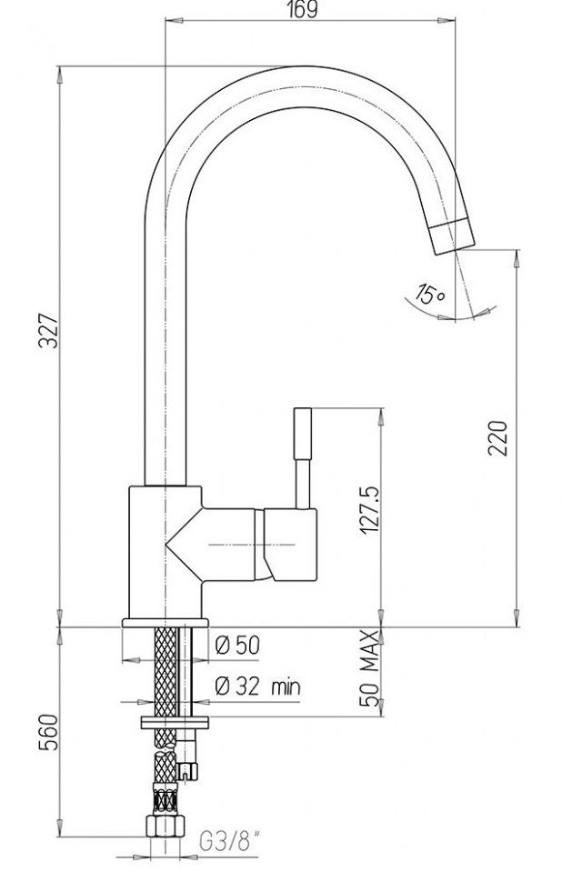 • Высота смесителя:
