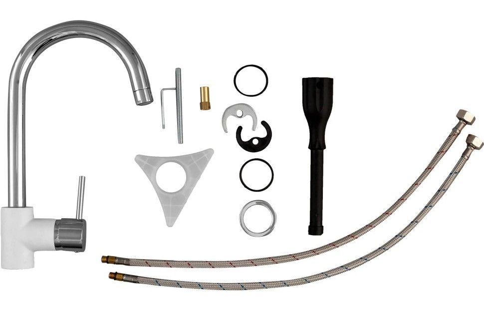 • Высокий корпус и поворотный излив дает больше возможностей при использовании на кухне.
