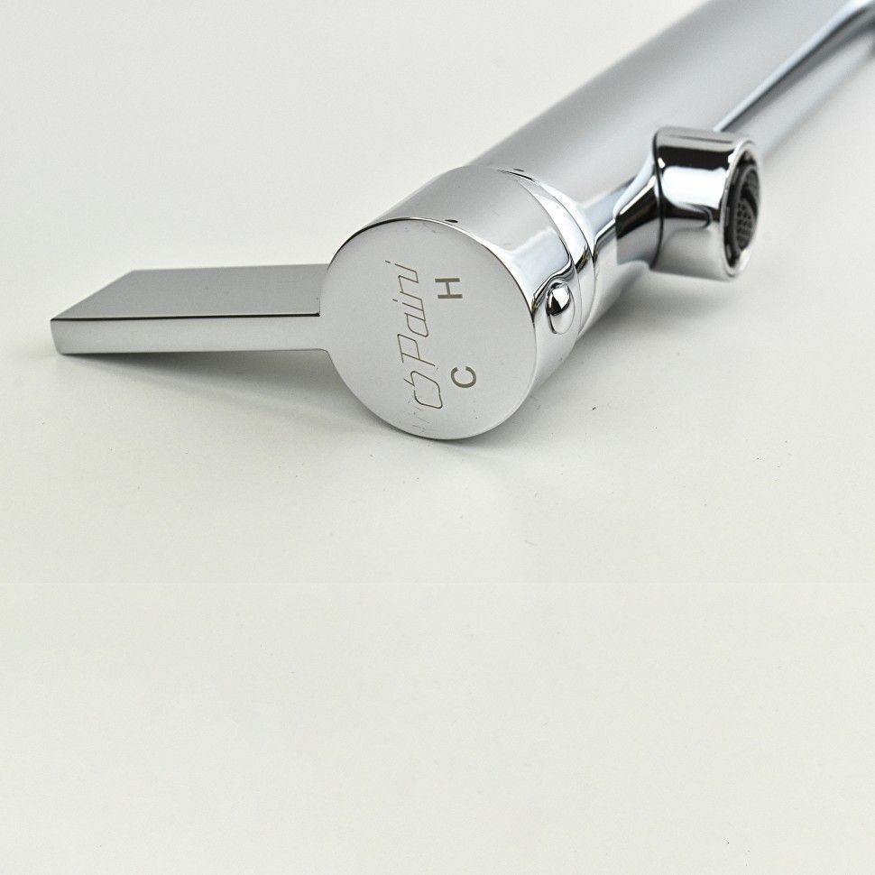 Смеситель для кухни коллекции CUCINA от итальянского бренда PAINI с необычной изогнутой формой станет стильным аксессуаром на Вашей кухне. Удобная ручка сверху на изливе обеспечивает легкость, комфорт и эффективность в использовании. Смеситель удобно закрывать и открывать его даже если у вас запачканные руки, просто поверните рычаг тыльной стороной ладони или локтем.Оригинальный рычаг управленияЛовите удивленные взгляды ваших друзей - такой красивой и одновременно удобной ручки они ещё не видели!Европейское качествоСделано в Италии. Гарантия – 5 лет.Технологии гарантируют долгий срок службыАэратор Neoperl наполняет поток воды кислородом, увеличивает напор, экономя воду. Одно движение пальцем для очистки сеточки. Nuovo Galatron - керамический картридж – основа, необходимая для долгой работы смесителя.Легкая уборкаМыльная губка и сухая тряпочка – все, что нужно для уборки. Несколько движений – и ваш смеситель от "Паини" как новый.