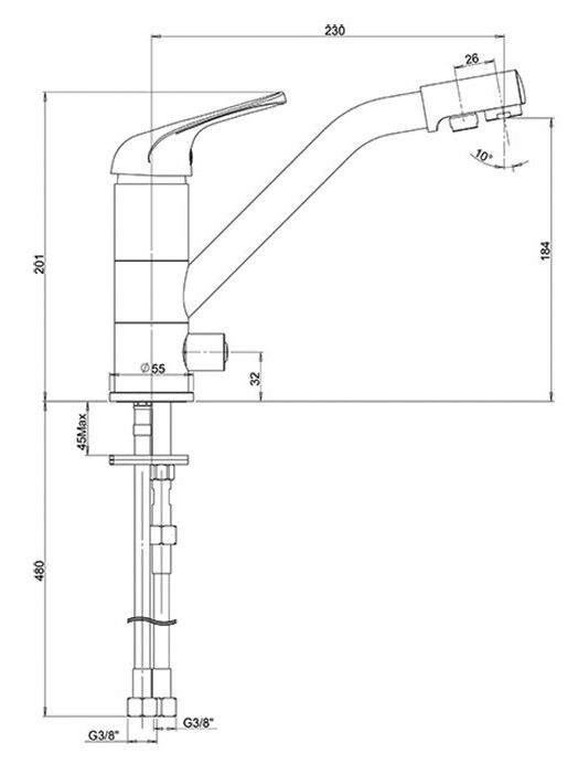 • Выдвижной излив: