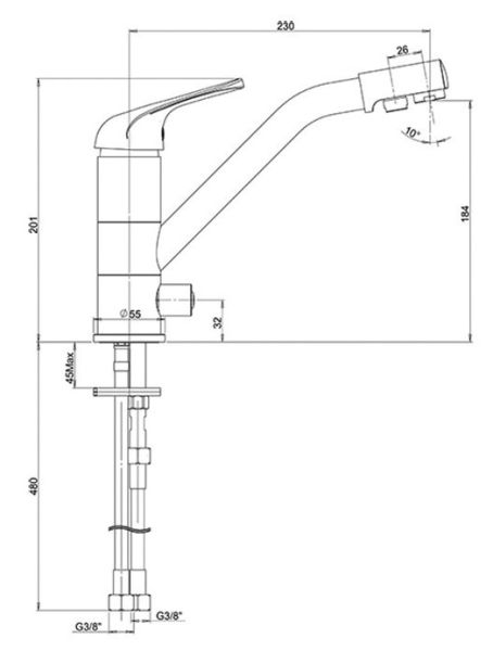 • Высота смесителя: