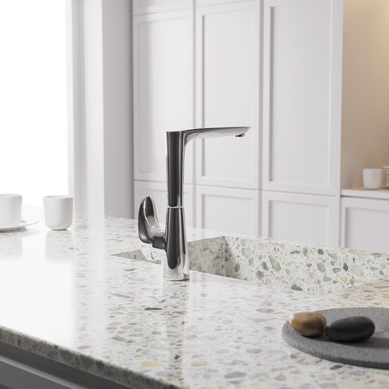 • Благодаря высокому корпусу и поворотному изливу идеально подходит для кухни.