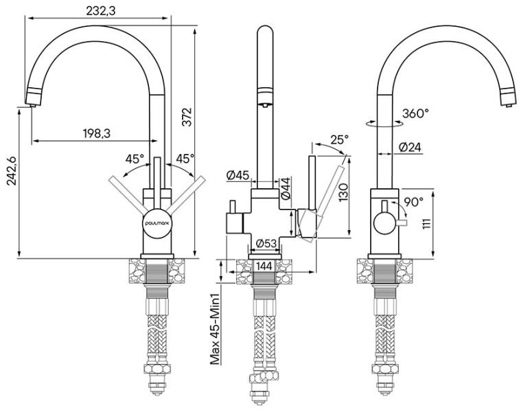 • Высота смесителя: