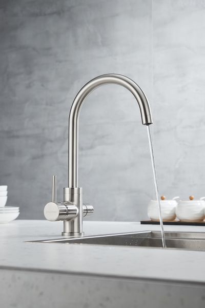 Смеситель для кухни, с возможностью подключения фильтра питьевой воды, артикул Es213211-NIМатериал корпуса - латунь высокого качества. Многослойное, стойкое к истиранию покрытие. Долговечный керамический картридж диаметром 35 мм. Съемный пластиковый аэратор, который обеспечивает мягкую струю, ровный и экономичный поток воды. Простой монтаж, стандартное подключение. Индивидуальная сберегающая упаковка с ложементом из поролона. Гарантия 5 лет.