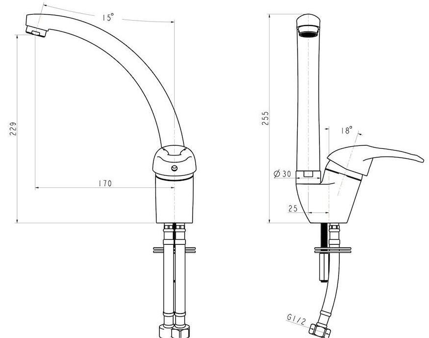 • Высота смесителя: