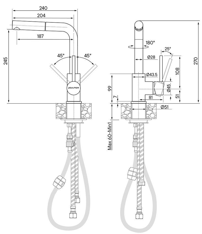 Смеситель для кухни с выдвижным шлангом, Ka214311-401Изготовлен из высококачественной латуни, которая отвечает высочайшим европейским стандартам качества, не содержит свинца, не разрушается со временем и безопасна для здоровья.Вытяжной шланг