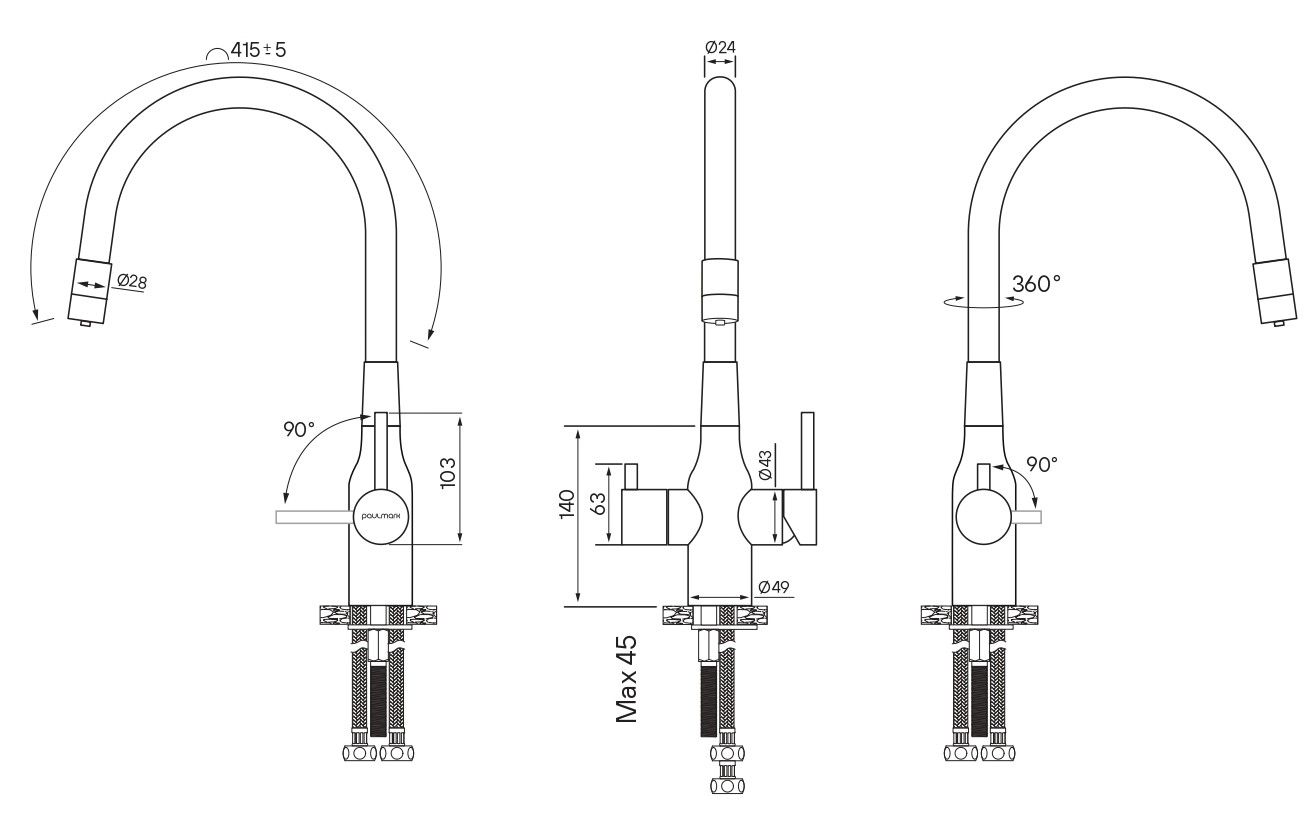 Смеситель для кухни Paulmark Salix Sa213419-418 чёрный металлик купить